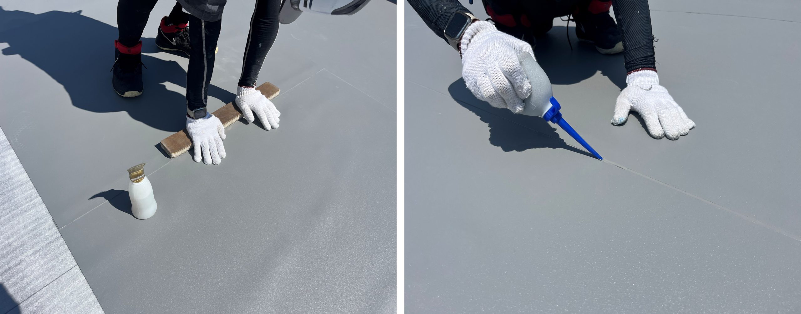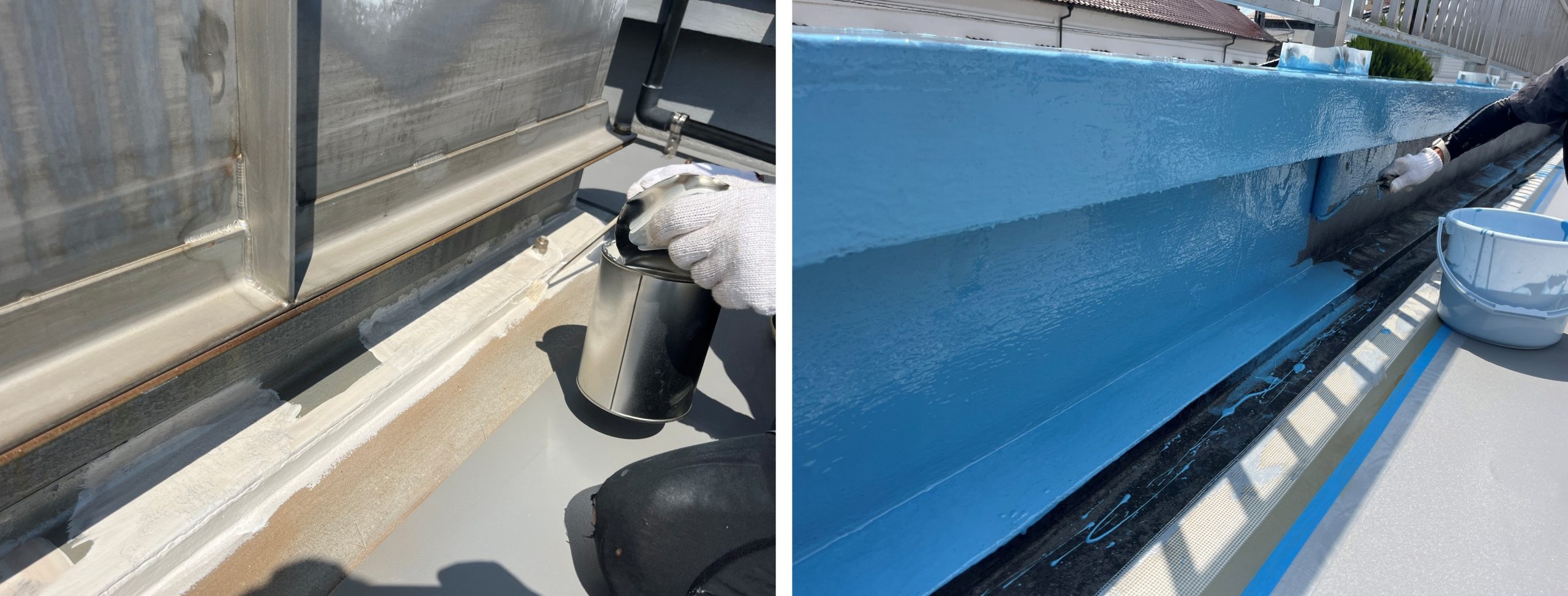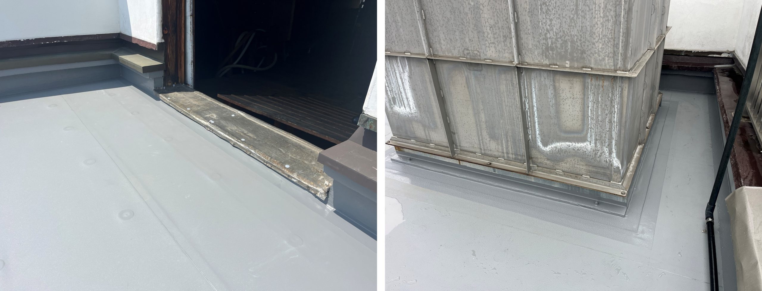 ▼ 土間塩ビシート・立上りウレタン防水工事 ▼